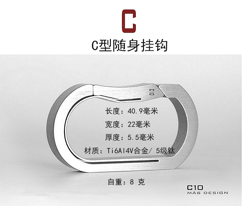 Handgrey Bauhaus C10 titanium gold key buckle hanging buckle multipurpose quick hanging US custom handmade import-Taobao