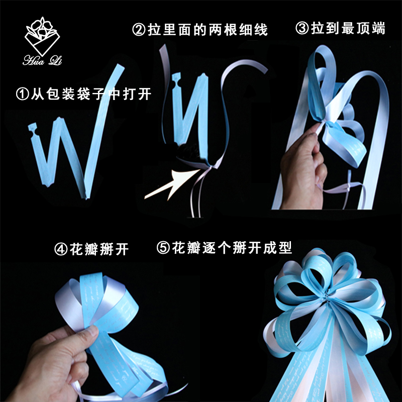 Two-color lazy pull flower ribbon draw flower bow gift box Gift packaging bouquet bow Wedding gift car New house decoration