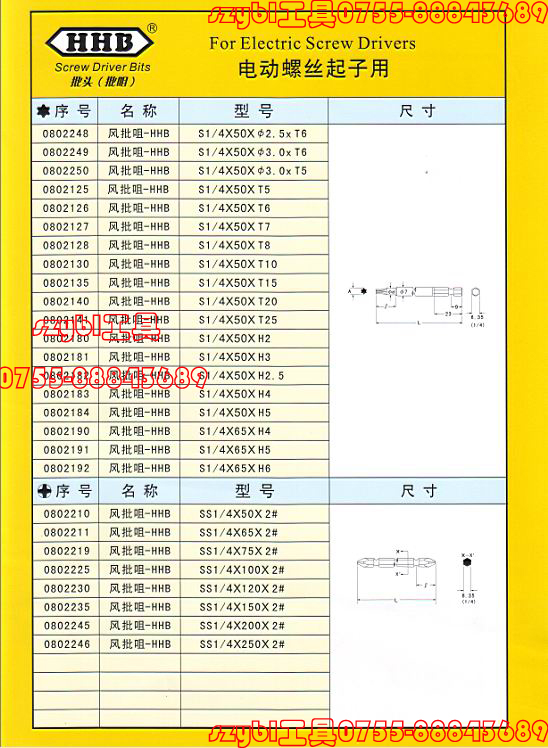 HHB SH1 4 * 50 * 1 6 * 20 * 00 Cross pneumatic screwdriver tip 00 # 1 6 Pneumatic driver head 00 * 1 6 * 50 * 6 35