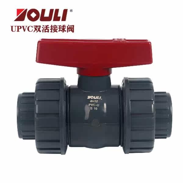 (Authentic) Youli dark gray national standard plastic chemical pipe fittings UPVC double-live ball valve Hubei Shaanxi
