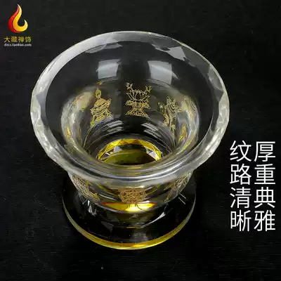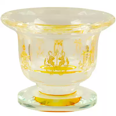 Tibetan water supply cup for Buddha cup Painted gold eight auspicious crystal glass Seven for high-legged water supply bowl eight for holy water cup