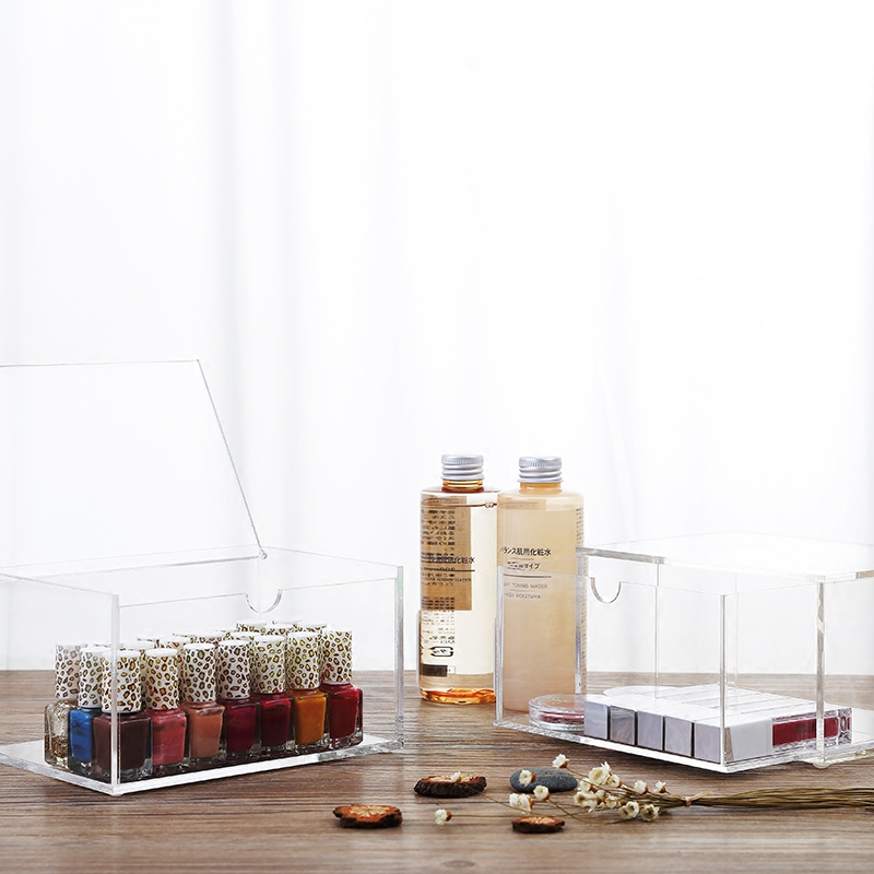 Acrylic transparent clamshell desktop cosmetics storage box Jewelry makeup dust nail oil finishing box can be superimposed