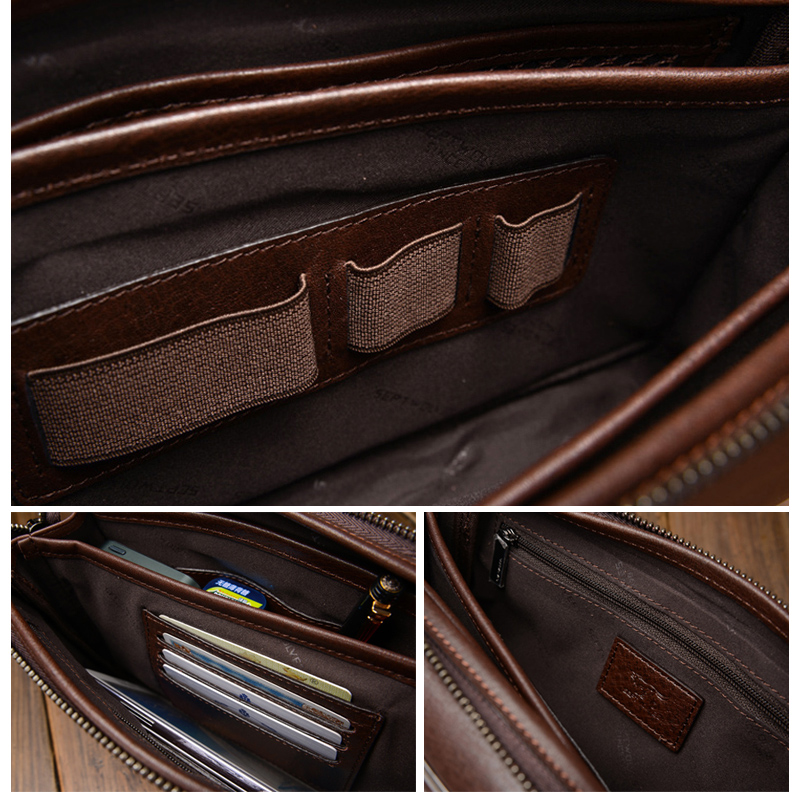 Seven wolves men's bag large handbag Men's leather bag Soft large capacity hand grab bag Cowhide clutch bag men's bag wallet