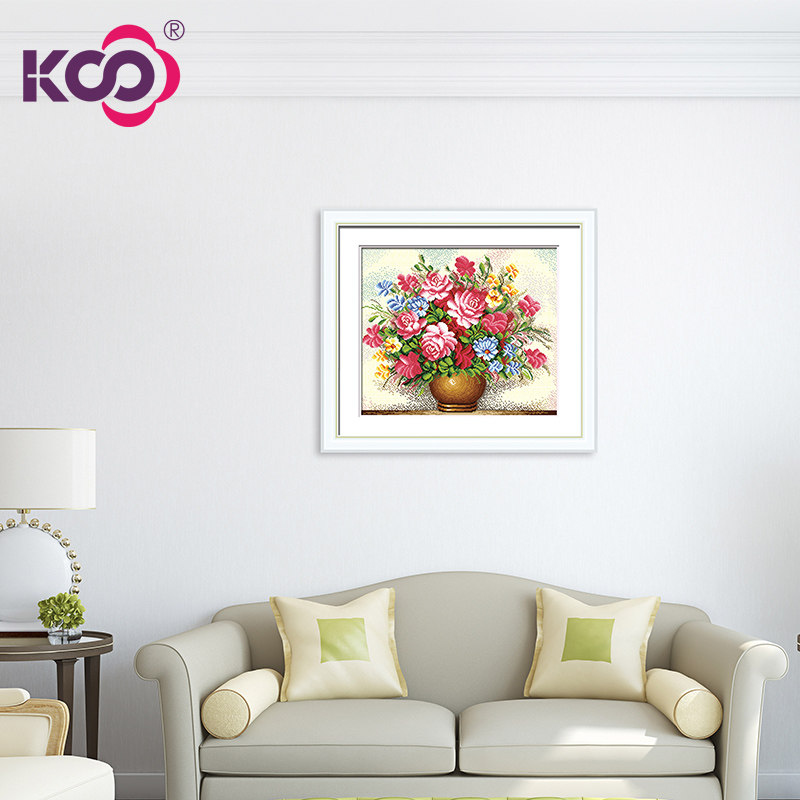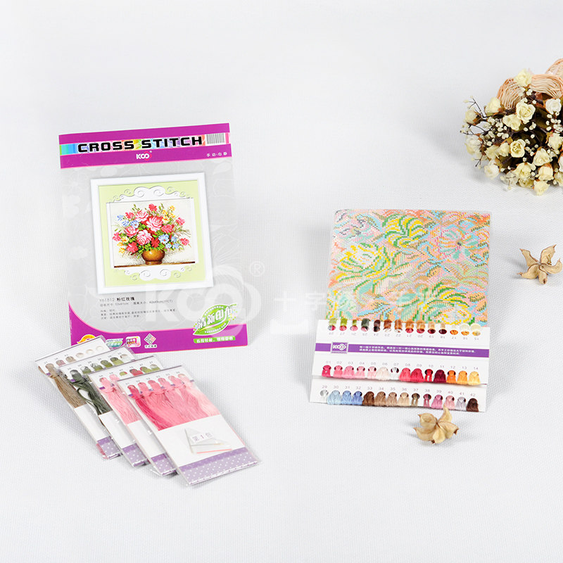 KS Cross embroidered shop line embroidered new living room minimalist modern bedroom painting Y61812 pink rose bottle