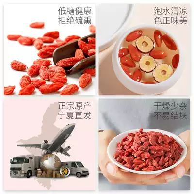 Buy 1 get 1 free Total 500g bagged wolfberry (low sugar wolfberry) Buy 1 get 1 free total 500g canned wolfberry(large grain wolfberry) Glass canned wolfberry free "fetal chrysanthemum" (summer herbal tea) Glass