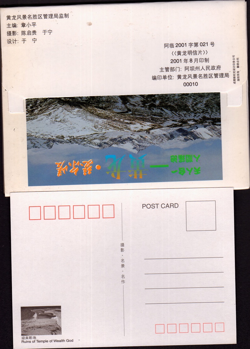 Jade Pool in the World-Sichuan Huanglong Postcard 2001 Aba Prefecture People's Government Edition Rare