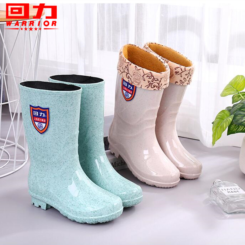 Back Force Winter Rain Shoes Ladies Fashion Rain Boots Middle Cylinder High Drum Waterproof Non-slip Plus Suede Rubber Shoes Cover Shoes Water Shoes 863