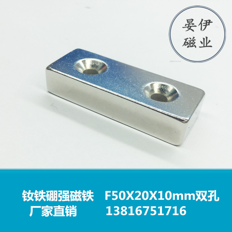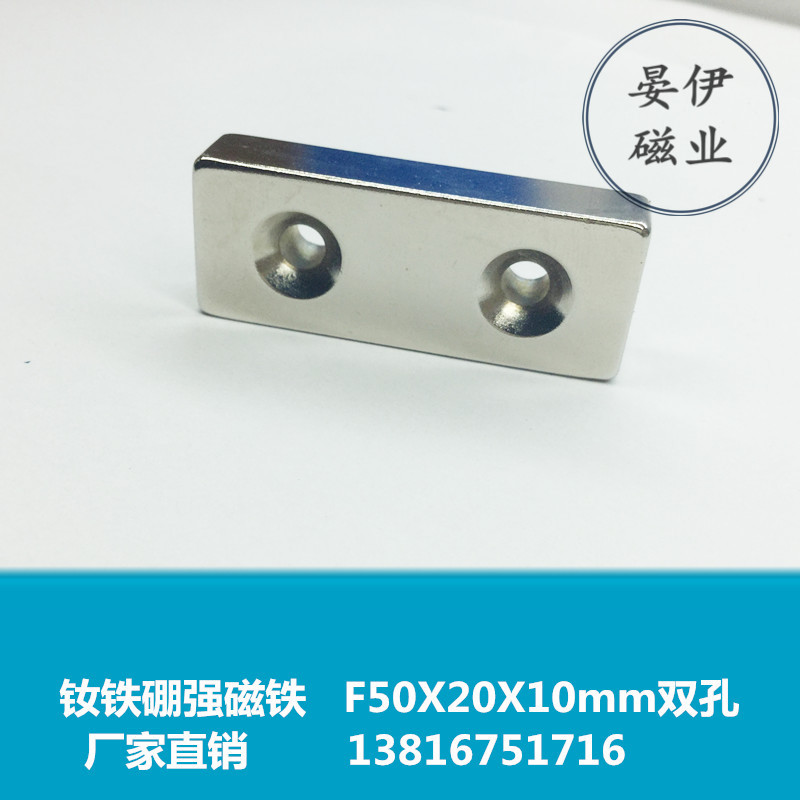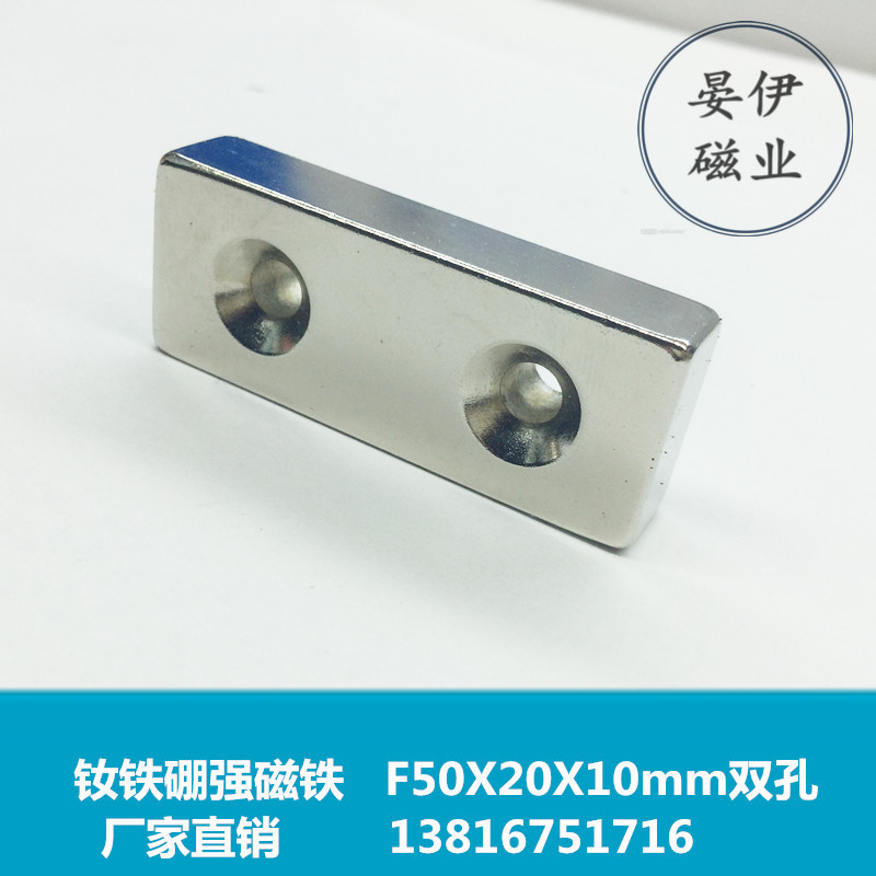 NdFeB strong magnetic dual - hole strong magnetic iron - absorbent strong rectangular porous magnet 50x20x10 hot selling