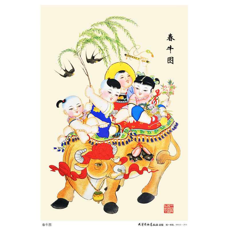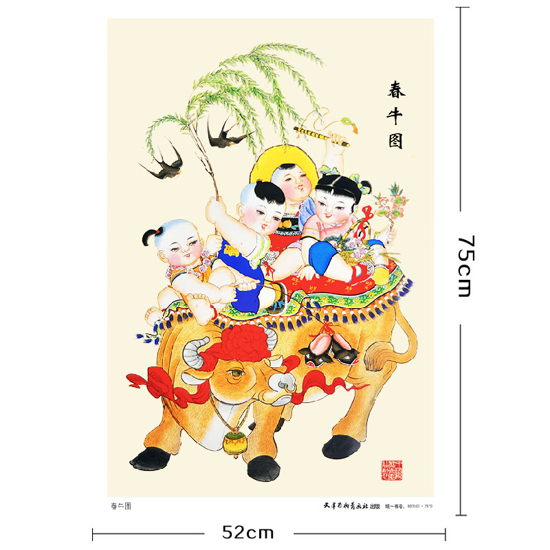 (Five) Spring Cow Figure Tianjin Yangliu Youth Painting Chinese Dream Doll Poster Stock Bull Market Wall Sticker