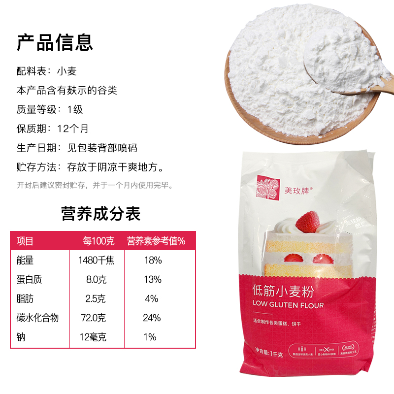 Beauty Rose Tablet Low Gluten Wheat Flour Cake Powder Low Gluten Flour Low Powder Toast Biscuit Baking Raw Material Original 1kg-Taobao