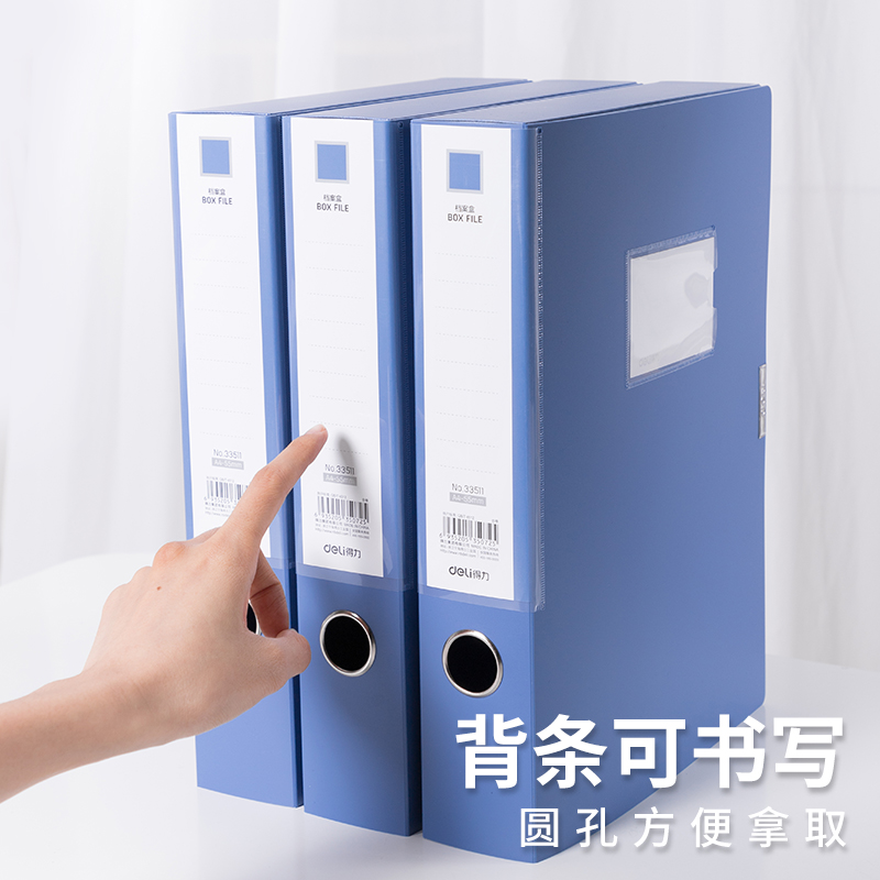 Deli a4 plastic file box 10 pack 33509 document data box thickened PP plastic document box Large capacity certificate storage box folder 55mm data box Office supplies Daquan