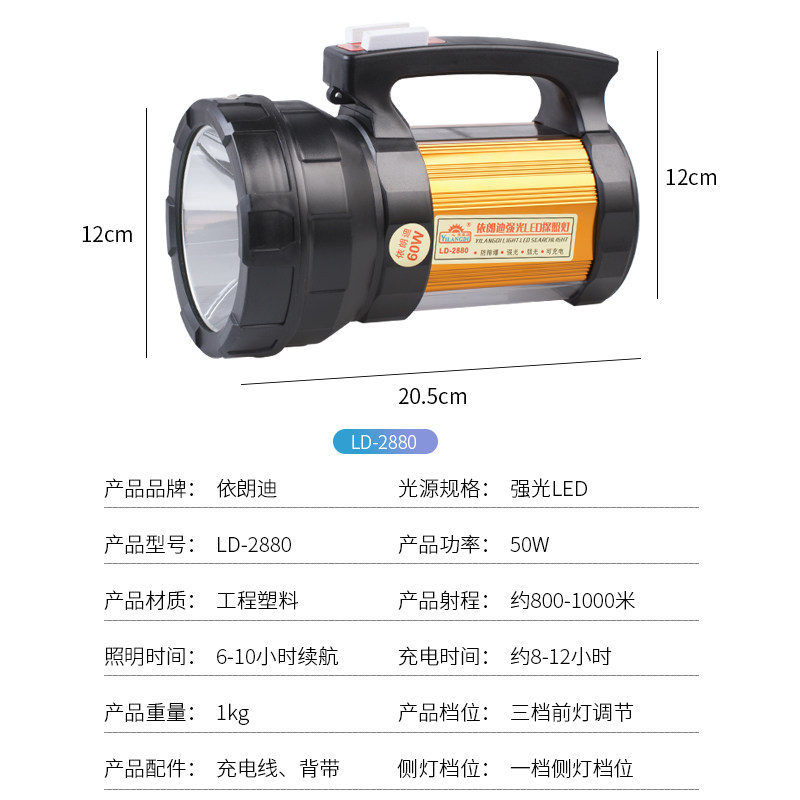 LD - 2880 strong light 60W searchlight light LED charging outdoor ultra - bright long - range patrol lights flashlight