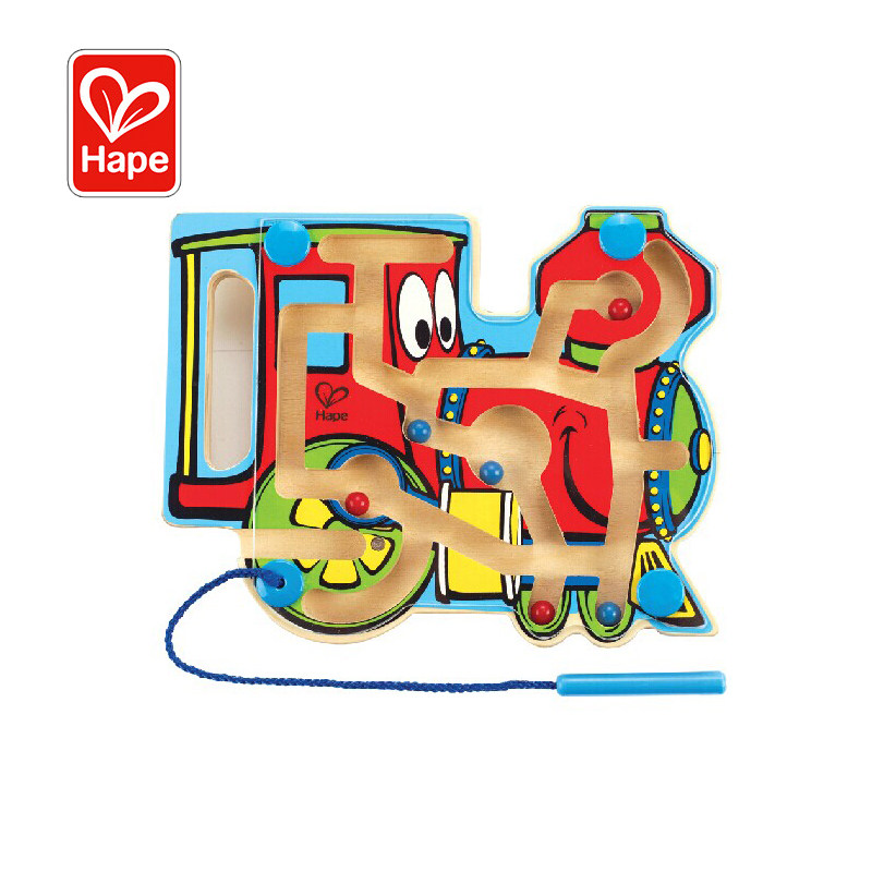 German Hape Happy Train Labyrinth Magnetic Rod Marbles Children Puzzle Toys 2-3-year-old Baby Gift