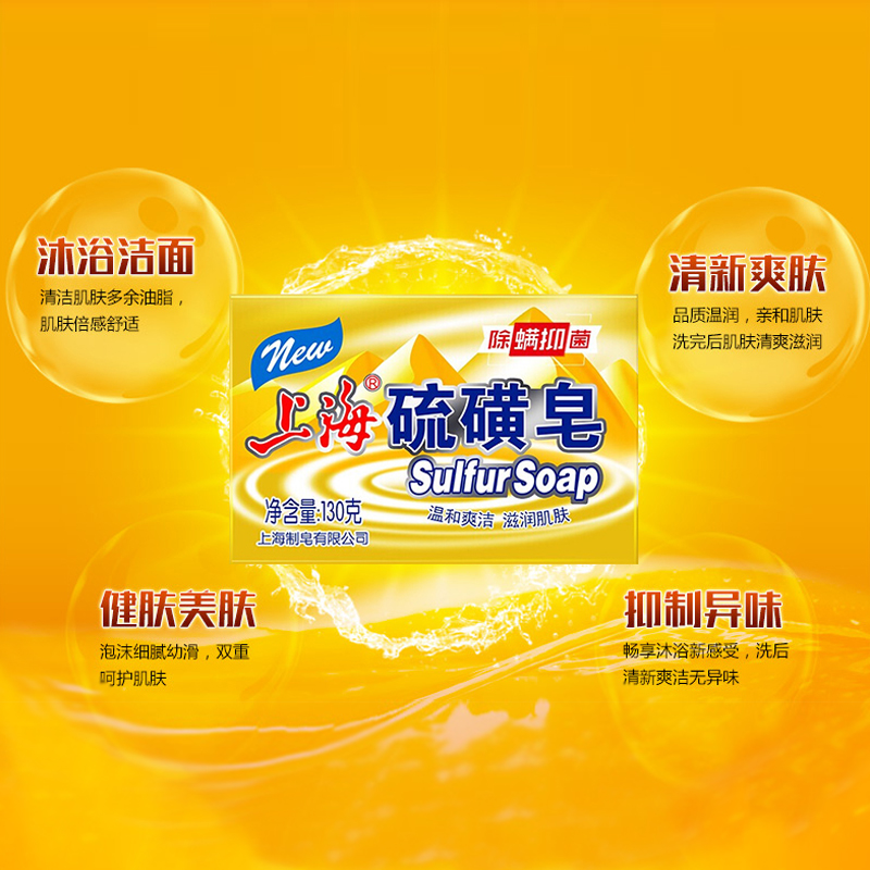 Shanghai soap Shanghai sulfur soap 130g4 pieces of antibacterial mite washing face wash wash soap shampoo wash hair bath