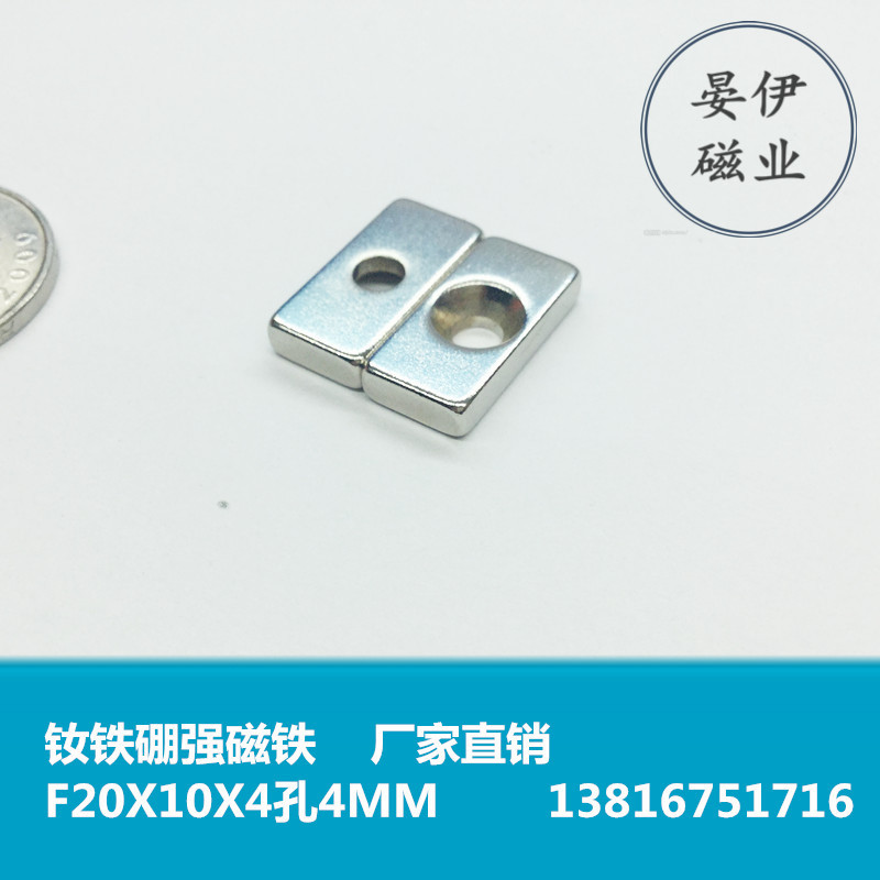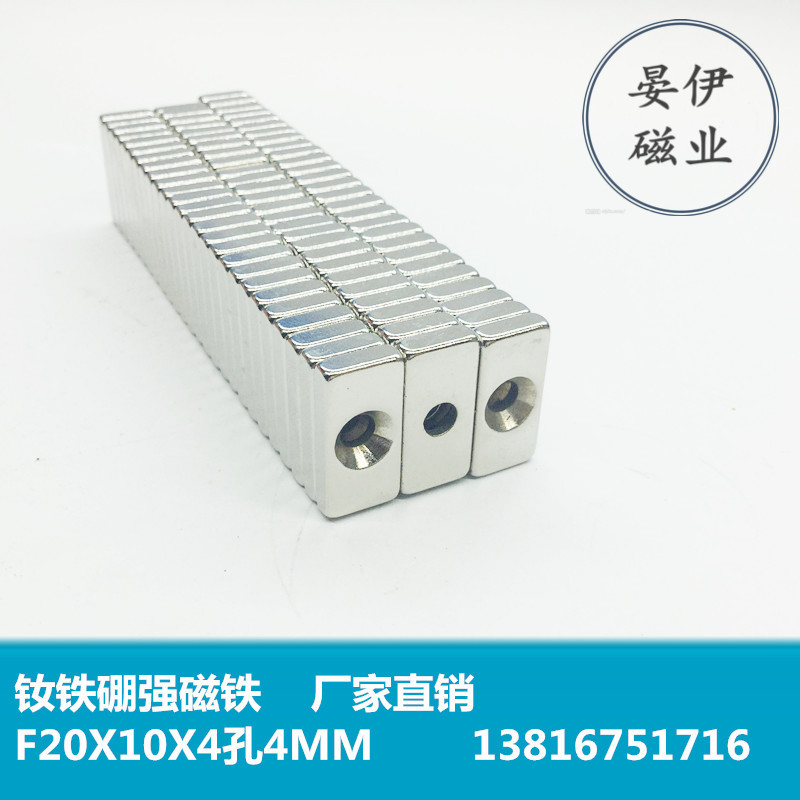 Magnetic neodymium iron boron strong magnet strong magnet suction iron stone powerful magnet rectangular magnet 20x10x4 hole 4mm