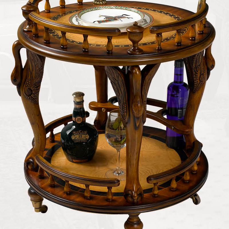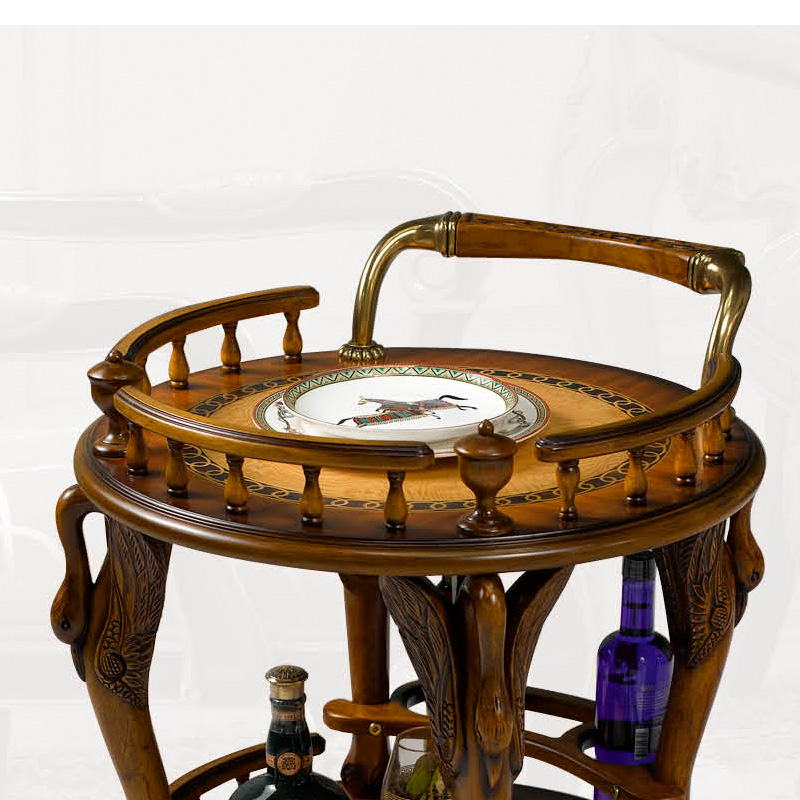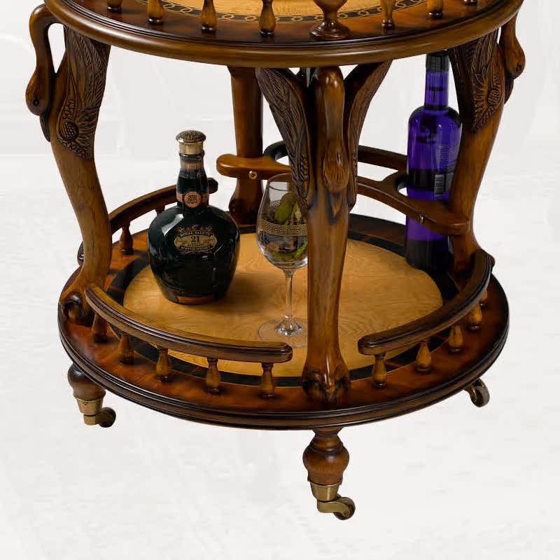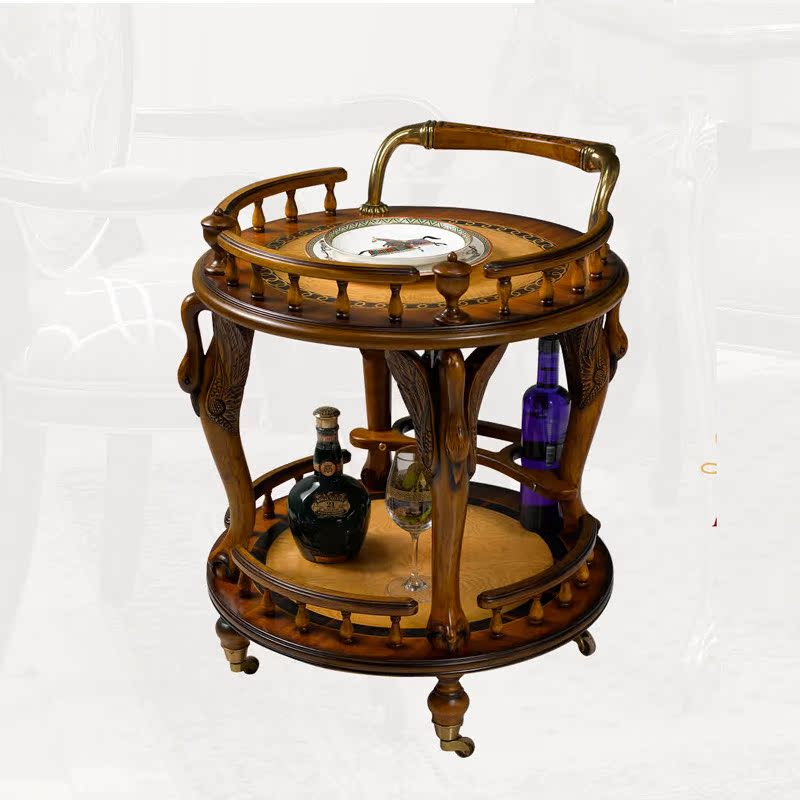 Xinyixuan European-style large villa solid wood wine cart Luxury dining room French round dining car trolley