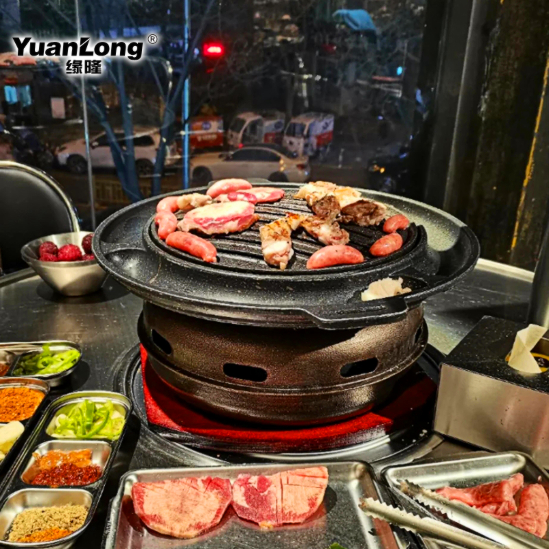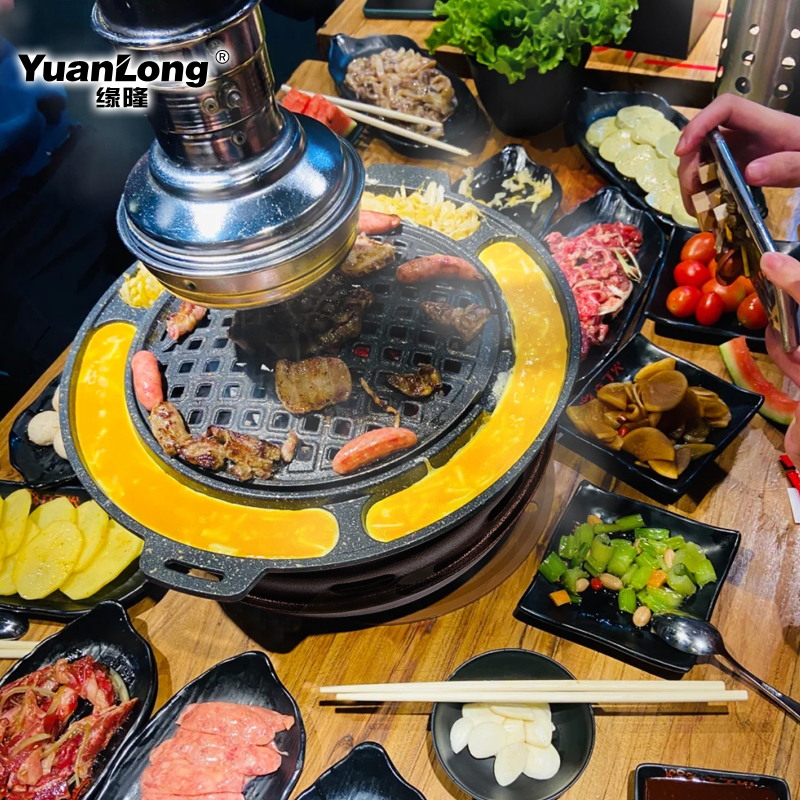 Yuanlong Korean carbon grill Korean barbecue grill Round charcoal brazier barbecue pot Household barbecue grill baking tray Charcoal grill