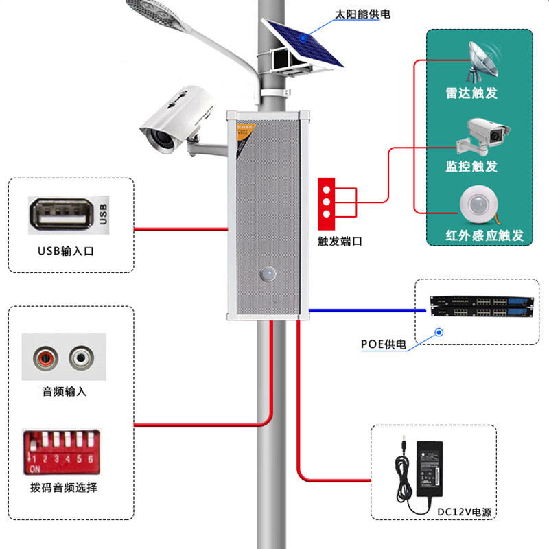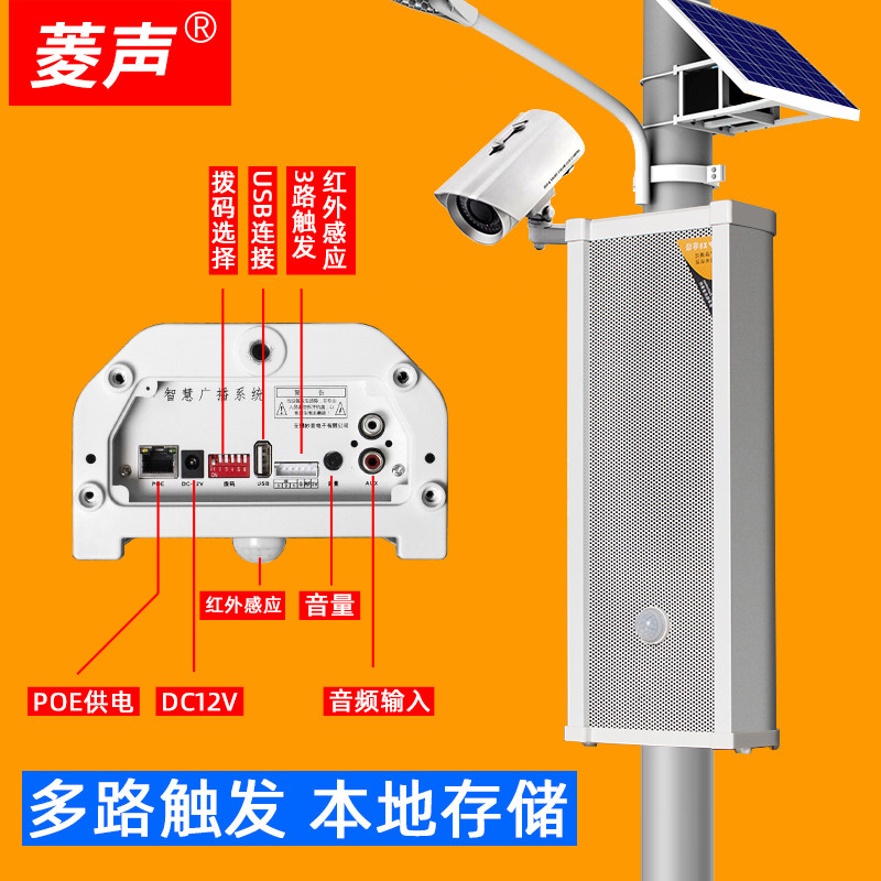 Lingsheng active induction trigger sound column outdoor waterproof sound with power amplifier infrared human body induction epidemic prevention voice prompt solar POE power supply monitoring safety alarm site horn
