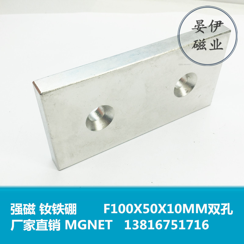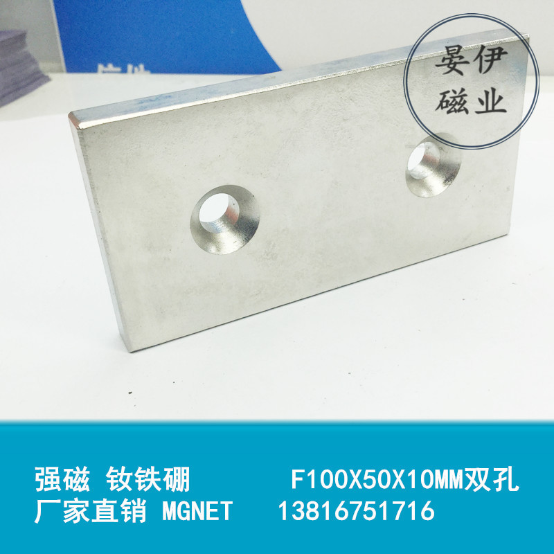 Neodymium-iron-boron strong magnet suction iron stone strong magnet 100 * 50 * 10MM double-hole magnetic king square powerful-Taobao