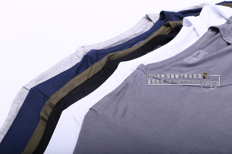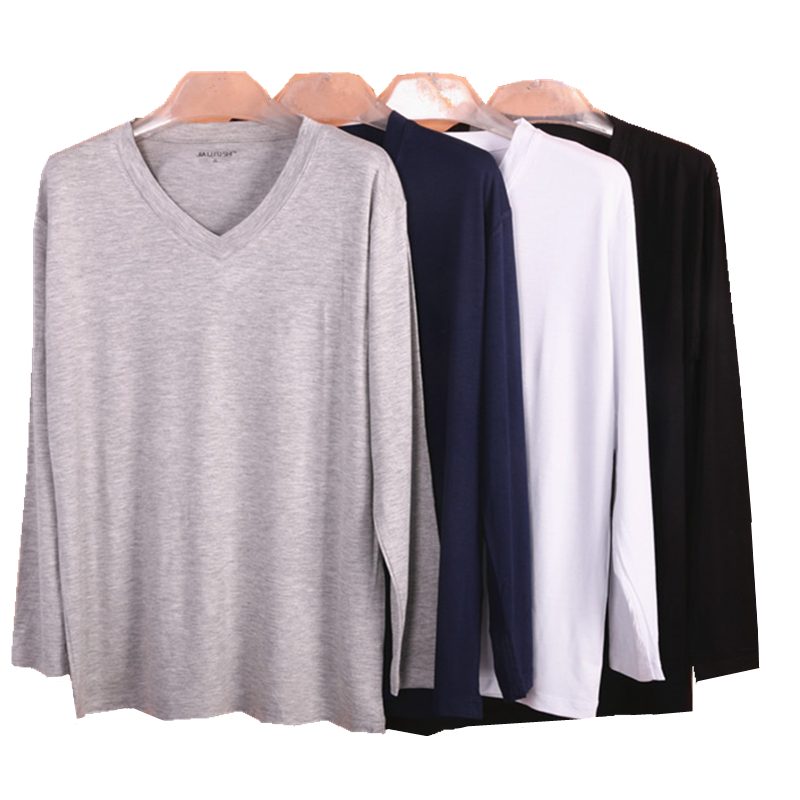 Spring and autumn summer men's modal solid color large size V-neck round neck long-sleeved t-shirt men's bottoming shirt air-conditioning home service tops