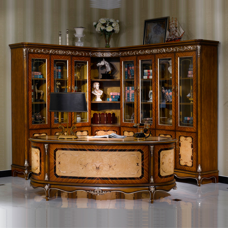 Xinyi Xuan Lavish Italian Furniture Style European-style Bookcase Desk Combined Villa Custom Bookcase Containing Cabinet