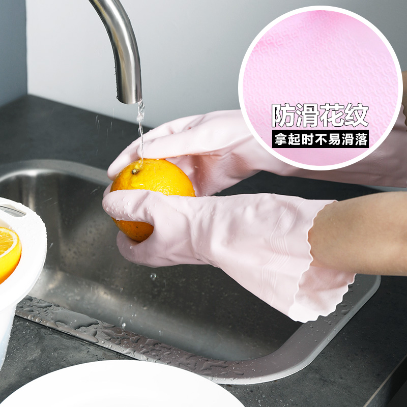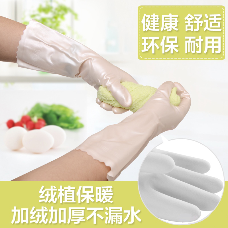 Japan imported SHOWA padded rubber gloves flocking cleaning housework gloves rubber dishwashing washing plus velvet women