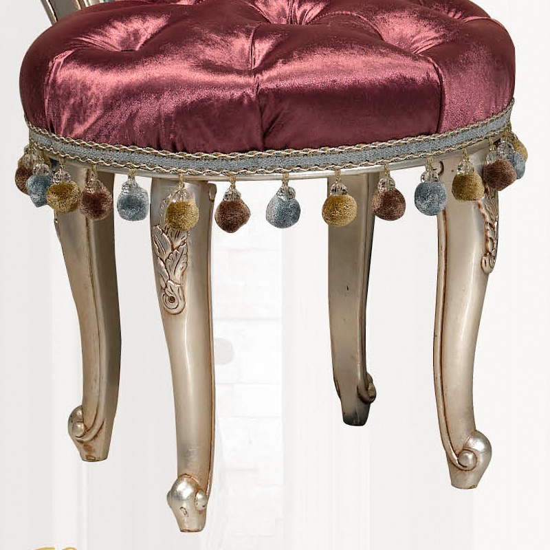 European solid wood silver foil made old dresser chair French fabric dressing bench dressing chair custom furniture