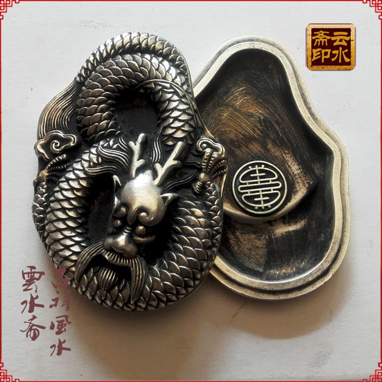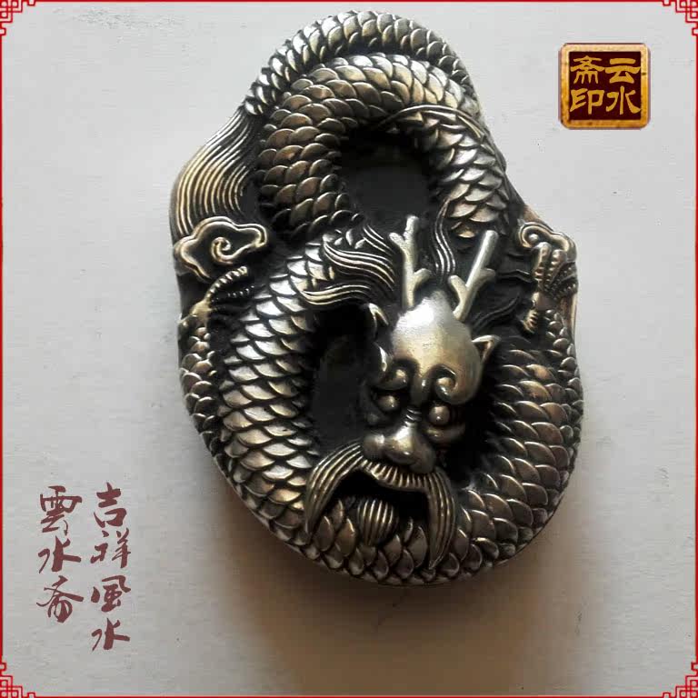 Antique Antique Literature Room Four Treasures YanTai Brick Plate Antique Pure Copper Solid White Copper Antique Brick Tai Large Cover Single Dragon