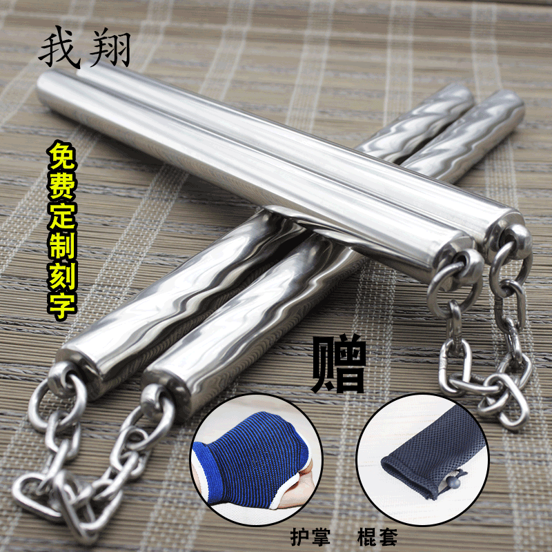 I Xiang stainless steel nunchaku custom lettering second stick performance practice practice nunchaku self-defense Bruce Lee