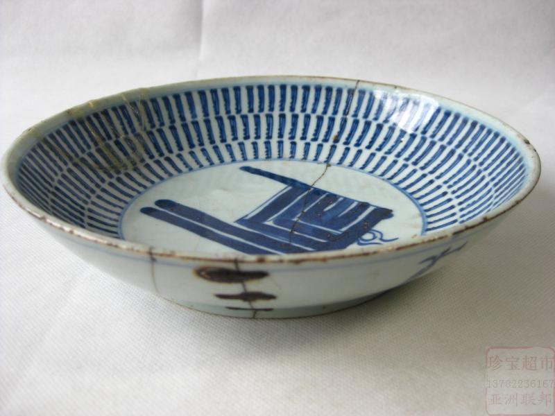 Qingdai Jingdezhen Kiln Kilis blue blue-green flower porcelain Sanskrit sushi (eight old curiosities) Antique old porcelain bowls
