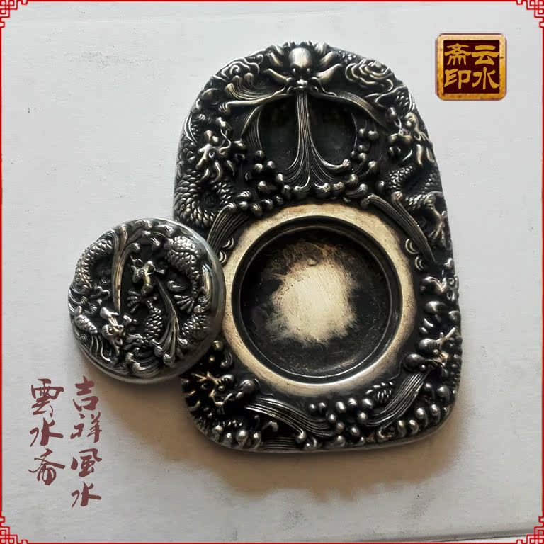 Antique made old white copper refined dragon purchase sea cover inkstone