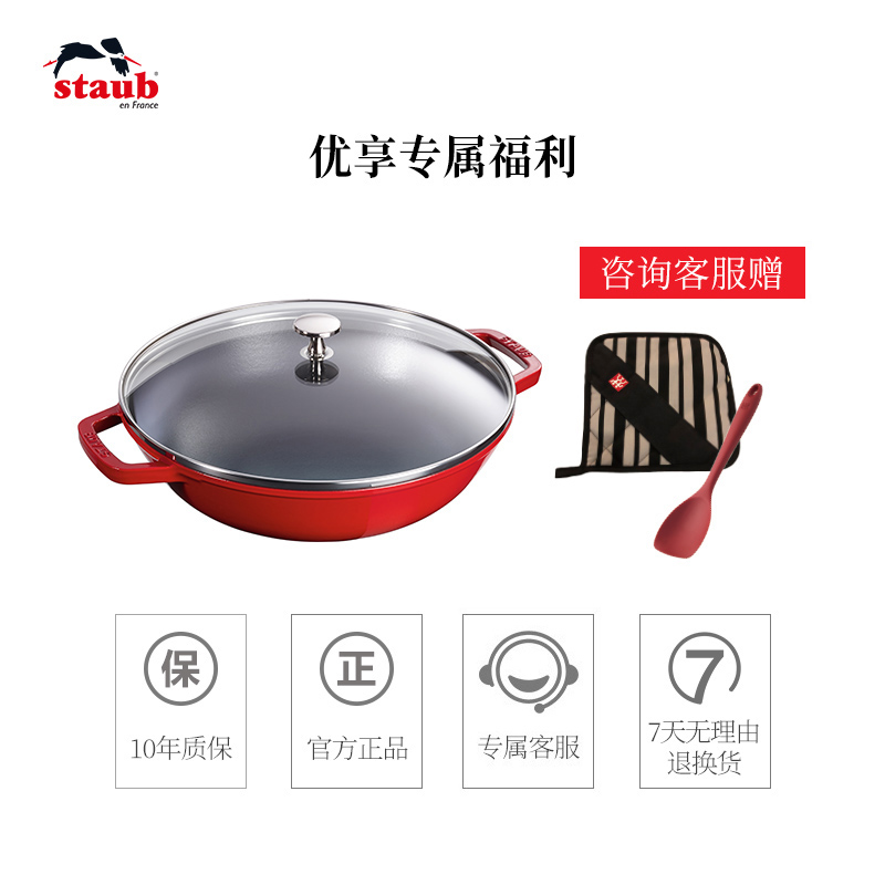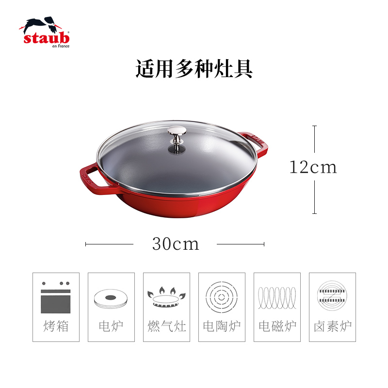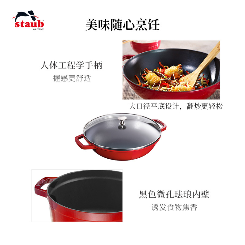 French imported staub enamel cast iron pot 30cm Chinese wok Household kitchen induction cooker universal pot