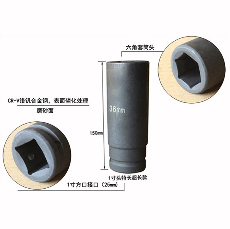 1 inch lengthened pneumatic pneumatic wrench heavy phosphorus black hexagonal sleeve 150mm long sleeve head 24-55mm