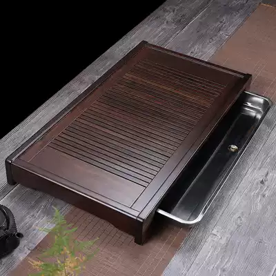 Tea tray Solid wood ebony rosewood drawer type stainless steel tray Household simple Kung Fu tea set Tea sea tea table