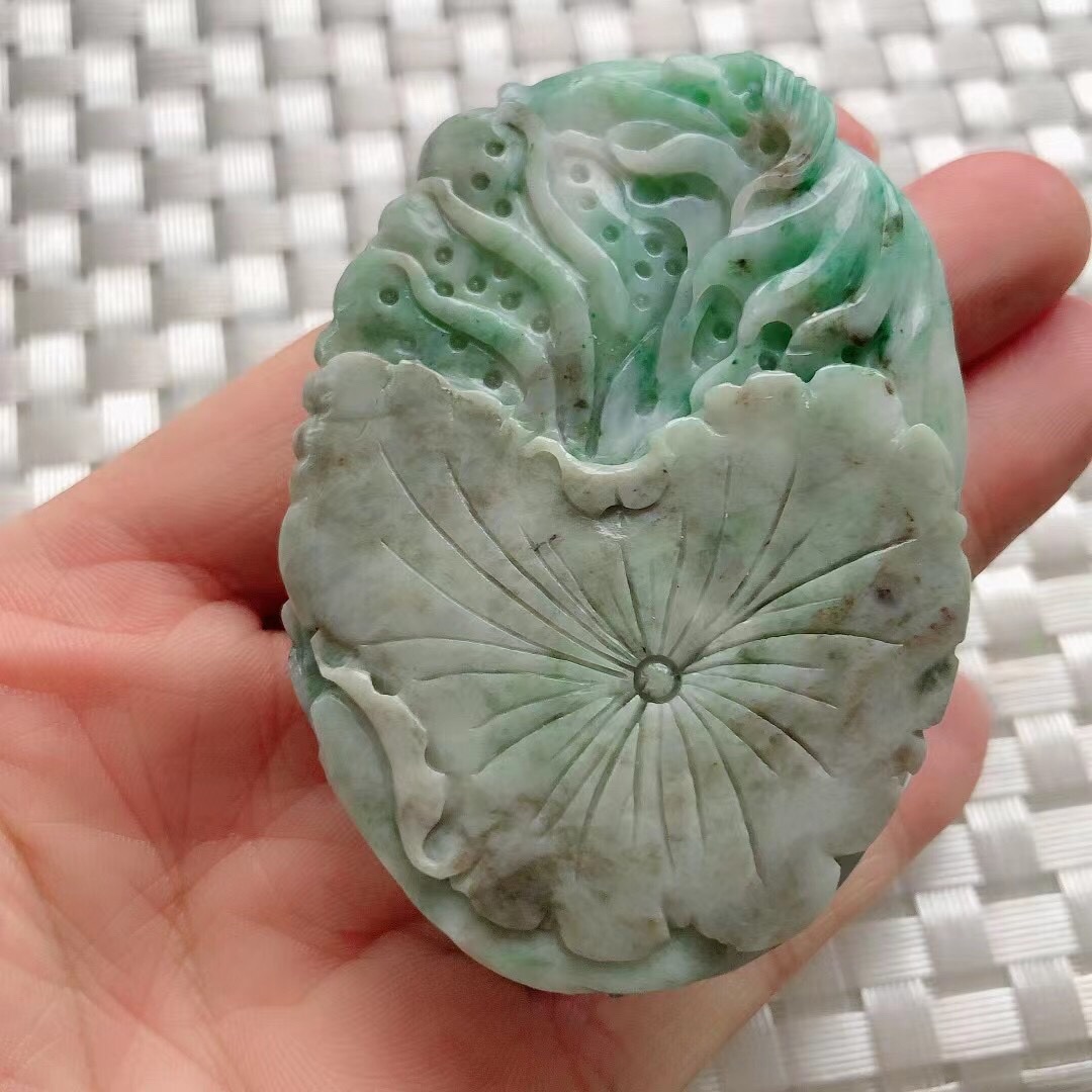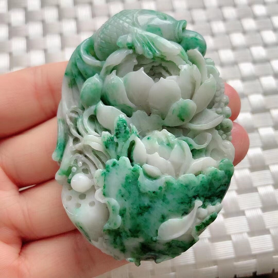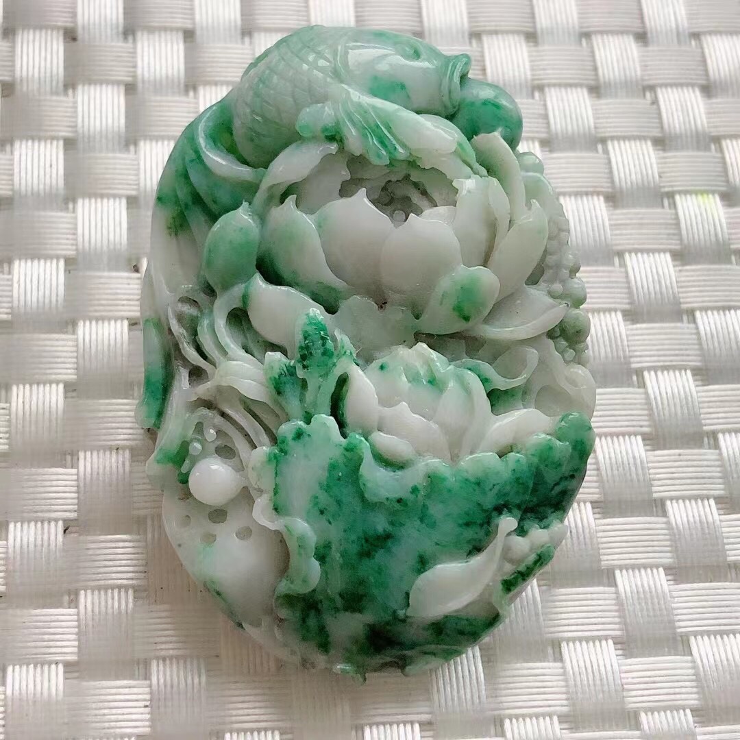 Day cuddling natural jade unique jade daytime Blue full green Mood Lotus Fish Pendant Pendant Female gift Gift Sweater