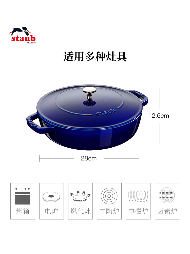 France imported staub enamel pot 28cm large capacity cast iron pot multi-purpose pot seafood pot home kitchen stew pot