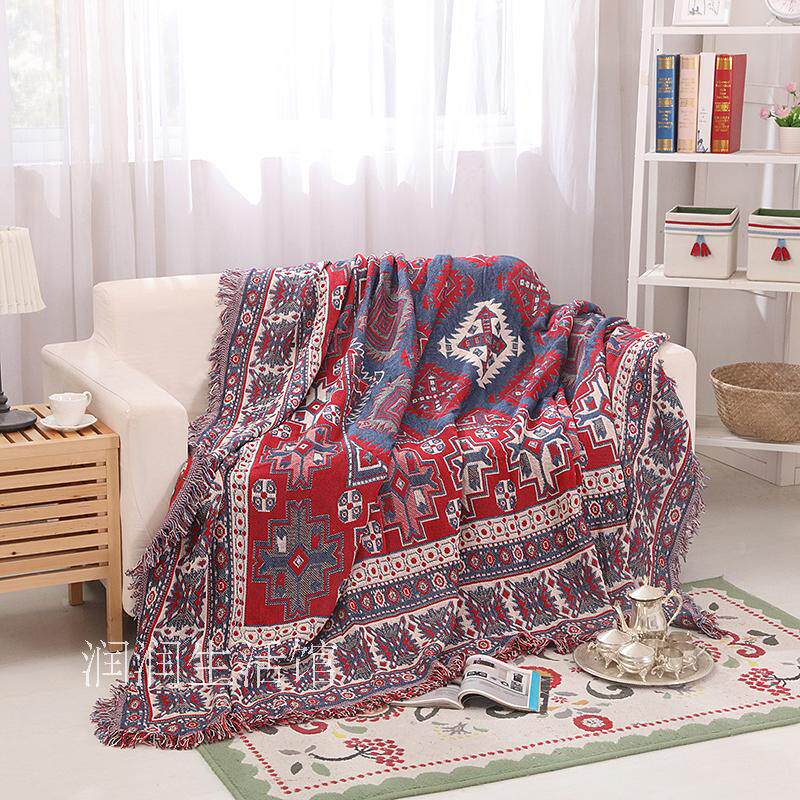 American-style cotton line blankets leisure blankets Sofa blankets Ethnic style double-knit blankets Single double sofa blankets