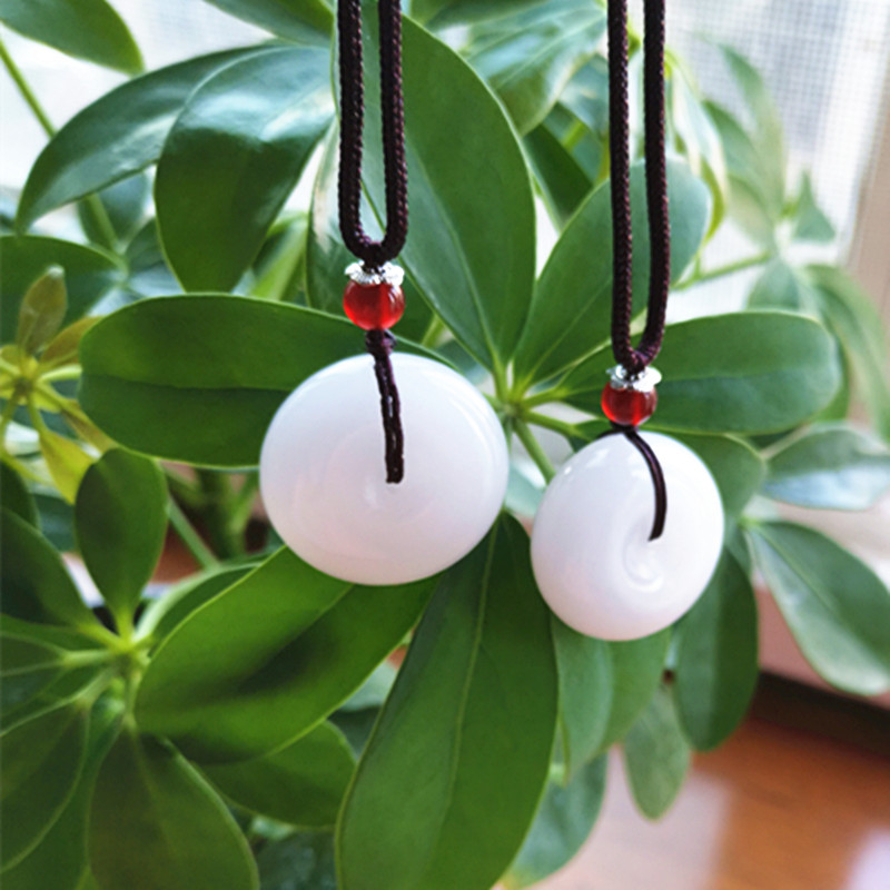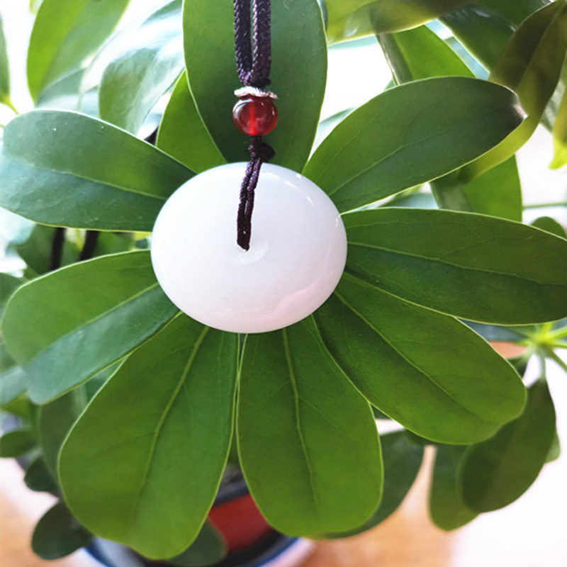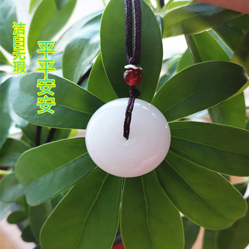 Shaanxi Xi'an Lantian jade white jade pendant natural jade Pingan buckle jade pendant diameter 2 6 thickness 1 1