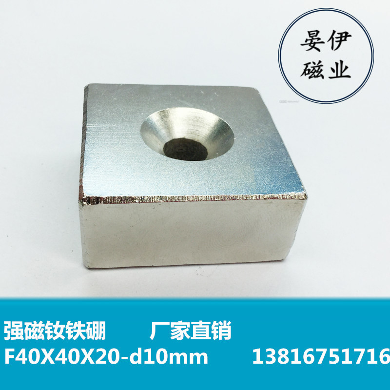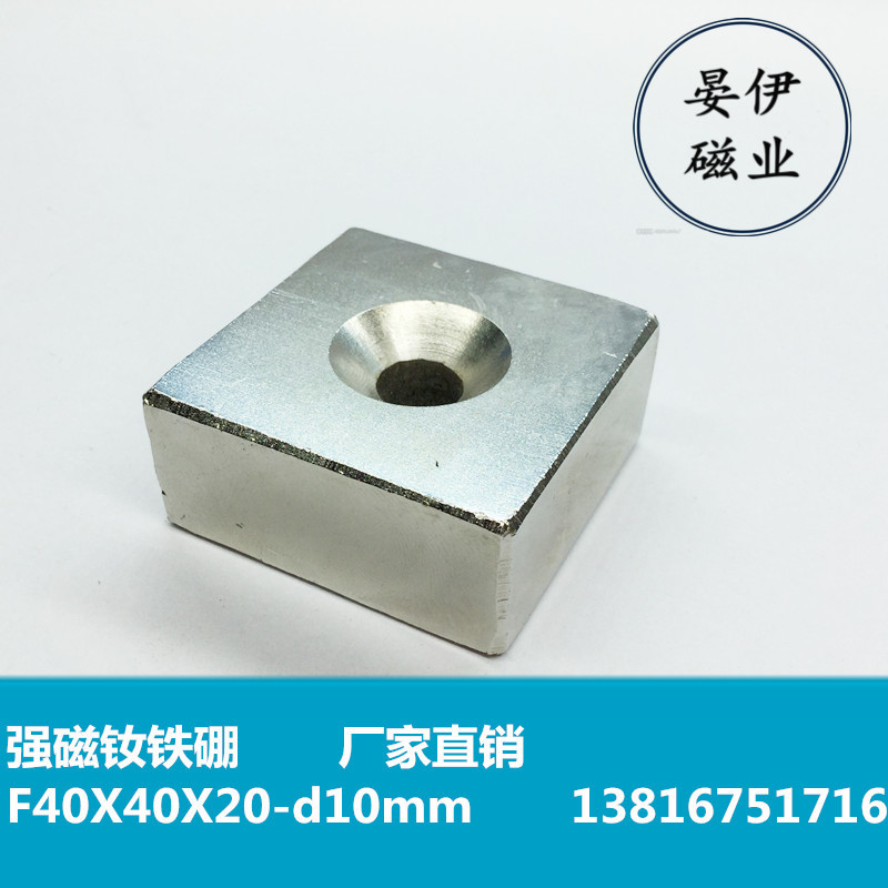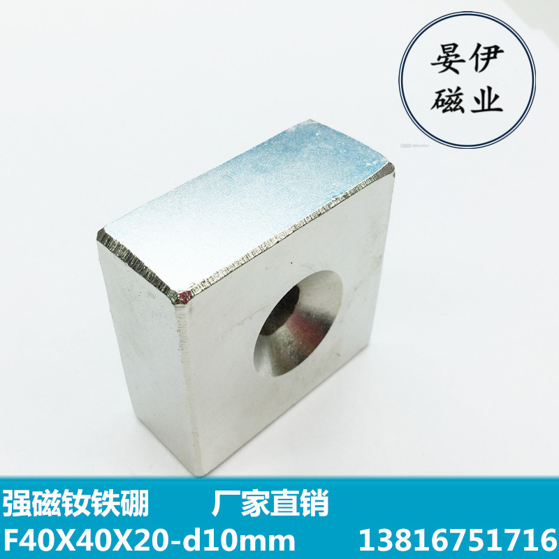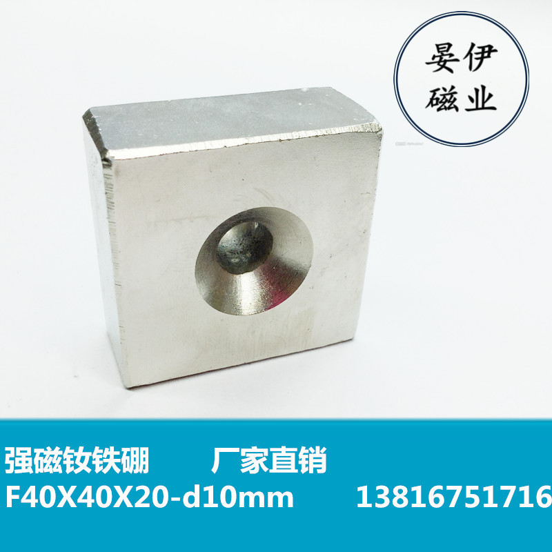 Powerful magnet neodymium iron boron strong magnetic steel suction iron stone square with hole 40x40x20mm36X36X16