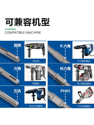 Electric hammer Electric pick drill bit Square handle four pit pick tip round handle two pit two slot tip Flat chisel Hexagonal U-shaped chisel Pick drill