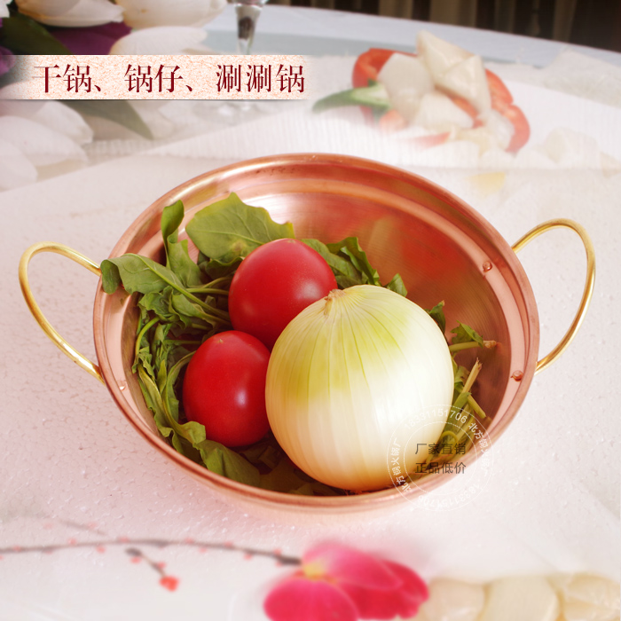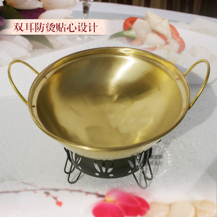 Northern hot pot pure brass thickened pot dry pot double-eared copper pot copper pot alcohol soup pot copper pot copper fire boiler