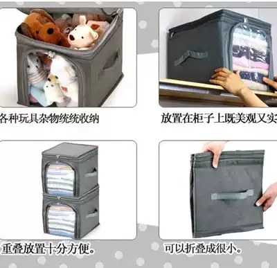 Bamboo charcoal non-woven transparent clothing storage bag Underwear and clothing finishing bag soft storage box Zipper with lid Small