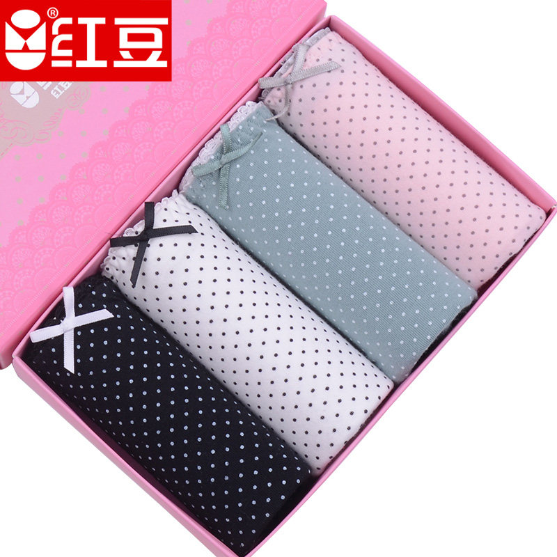 Red Bean Lady Pure Color Cotton Triangular Middle Waist Briefs Female Style Triangle Mid-Waist Shorts Pants Head 4 Boxed