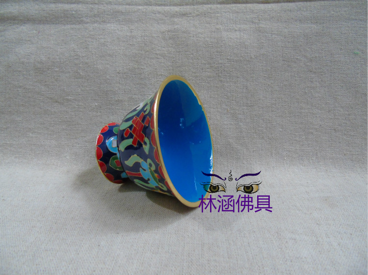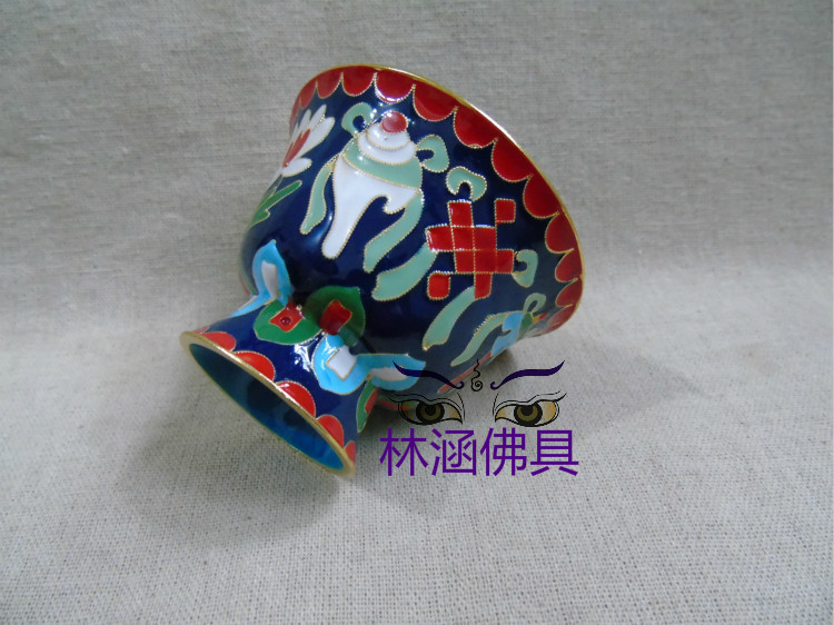 (Lin Han Buddha) Cloisonne Holy Water Cup Eight Auspicious Eight Treasures Cup Eight Treasures Water Supply Bowl Blue Medium