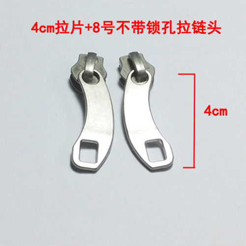 Silver 4 0 pull piece No. 8 slider without hole Silver 4 0 pull piece No. 8 slider with hole No. 1 zipper piece (for built-in lock) No. 2 zipper piece (for built-in lock)