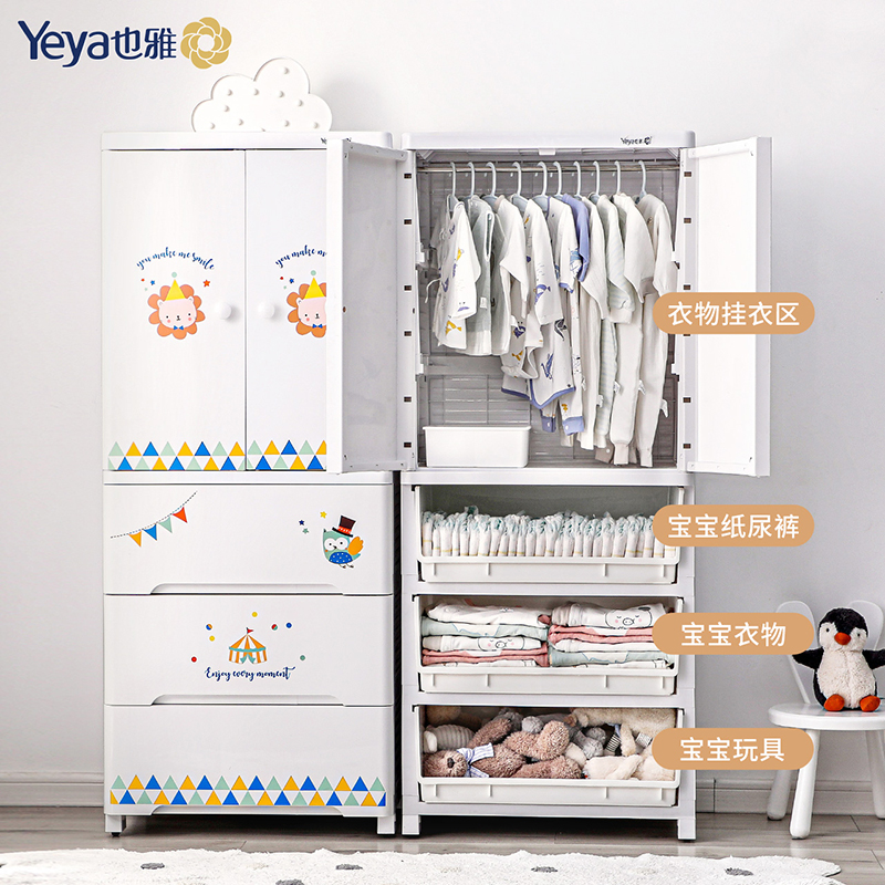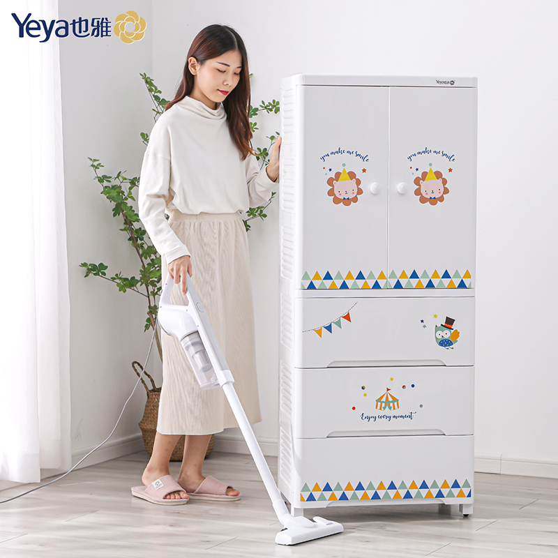 Ya double door storage cabinet drawer type baby locker baby multi-layer thick plastic cabinet children's wardrobe