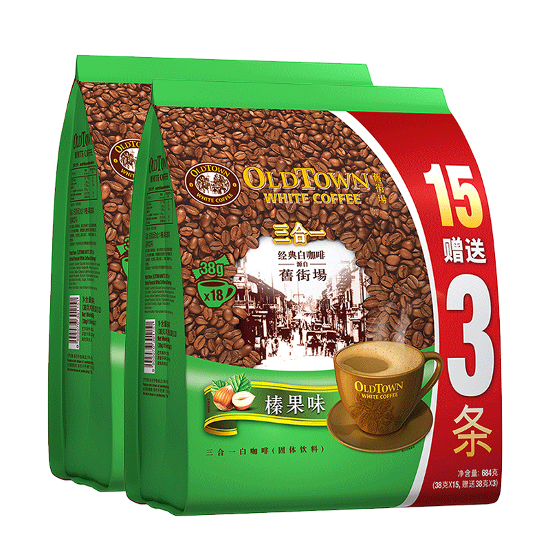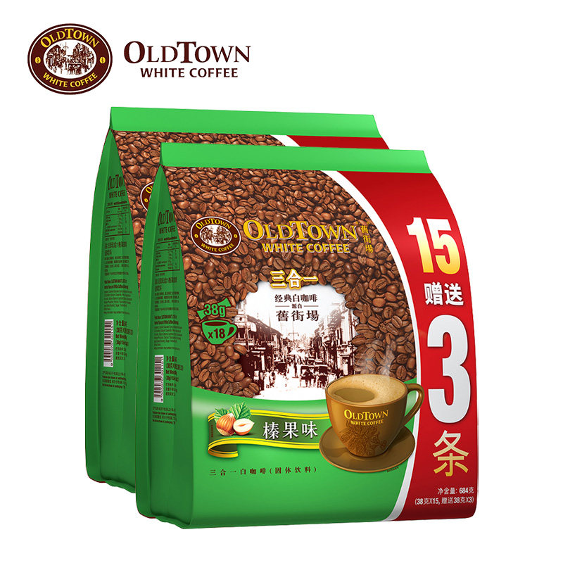 Ipoh Old Street Market Hazelnut flavor white coffee Malaysia imported instant three-in-one original coffee 18 * 2 bags