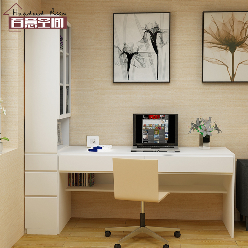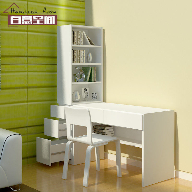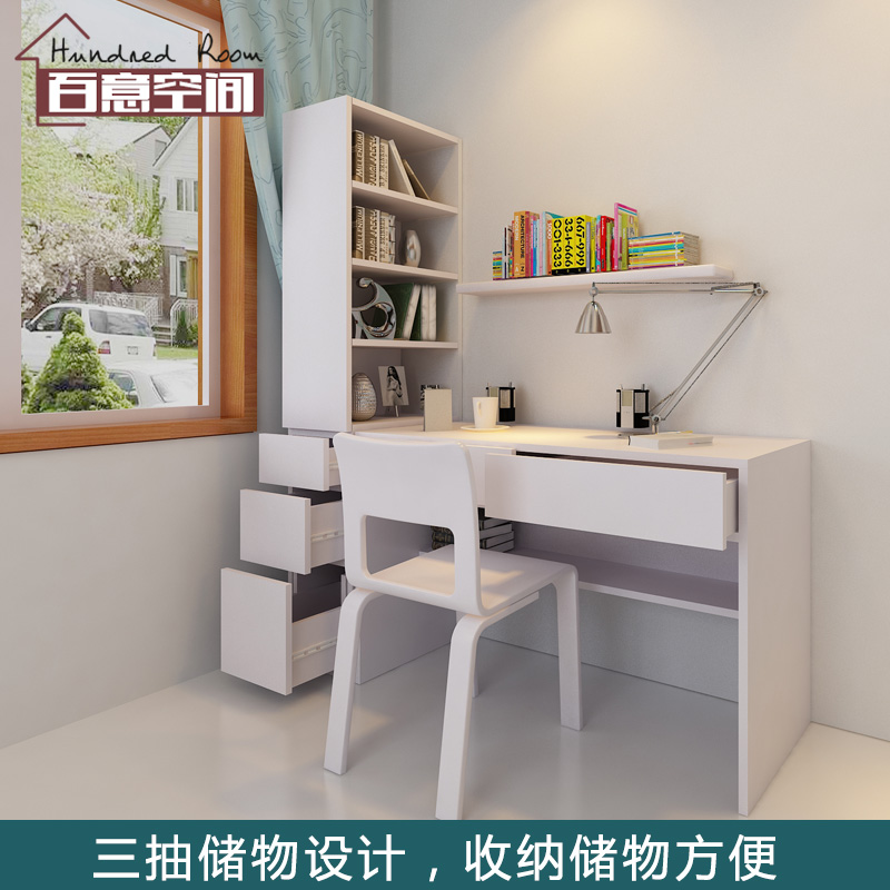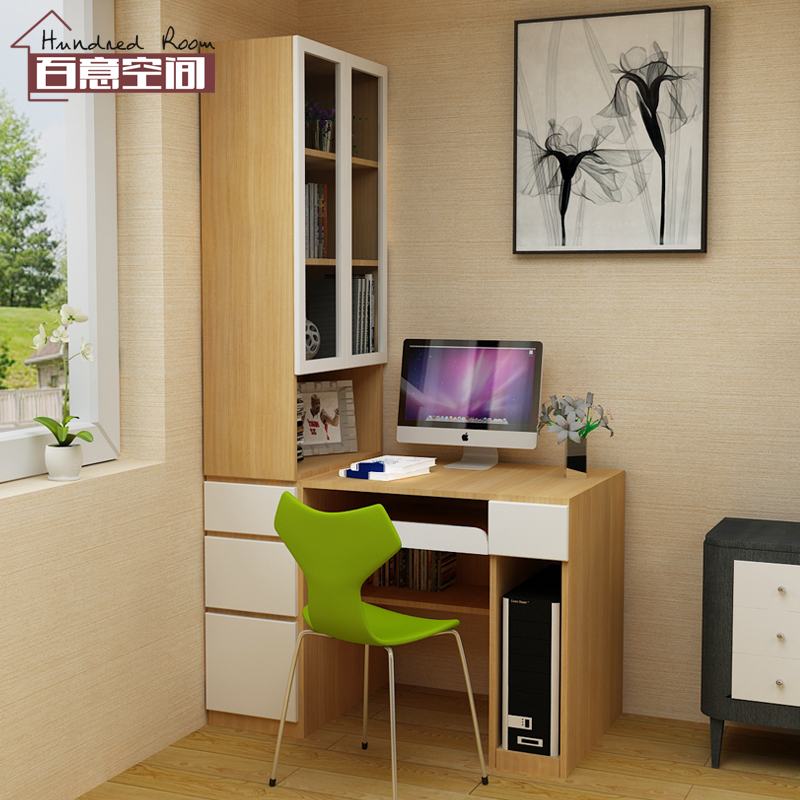 Baiyi Space Double Desk Bookshelf Combination Student Home Desktop Computer Desk Learning Table Corner Desk Combination