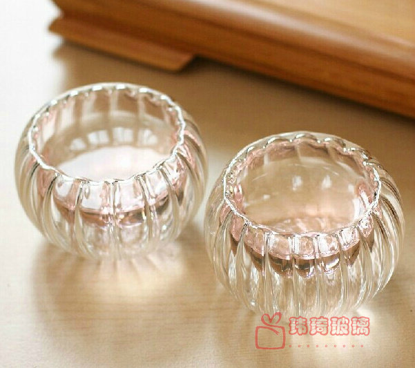Heat resistant double - layer tea cup insulation glass glass striped cup kung fu tea set No. 50ml