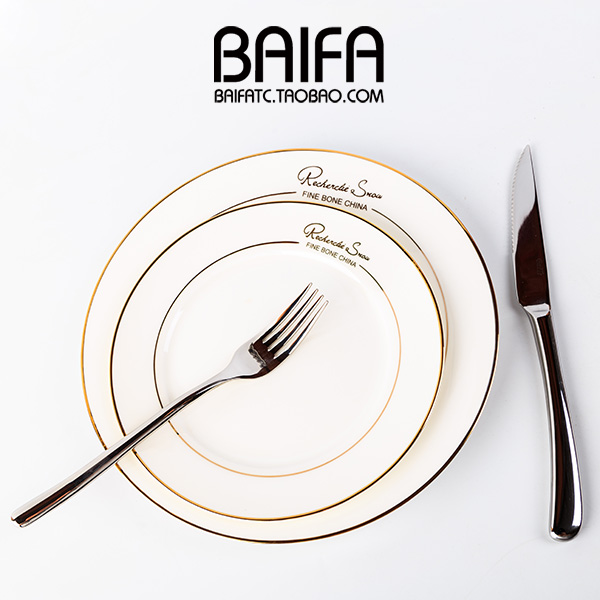 Eurostyle Ceramic Flat Disc Dish Western Dining Steak Dinner Plate Home Nordic Plate Knife Fork Cutlery Sets Logo Custom